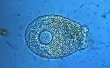 - الهضم = أما طريقة الهضم فتتم بطريقة مشابهة لتلك في التنفس، حيث يتم الدفع بالماء وباقي الفضلات، وذلك بمساعدة عضي صغير جدا دوره الرئيسي هو إخرج الفضلات (اسمه بالفرنسية vacuole pulsatile)