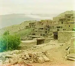 تصنع الأول بشكل عام من الحجر أو على جوانب التلال أو على المنحدرات لتوفير الحماية ضد الهجمات المفاجئة. عادة ما تكون المنازل مكونة من طابقين، وهي متداخلة لجعل دخول الأعداء إلى أي مكان على الطرقات من ضرب الحال فعليًا. عادة ما يكون للمنزل جانب جنوبي للاستفادة من الشمس في فصل الشتاء وللحماية من الرياح الشمالية. في كثير من الأحيان، لا تقع بالقرب من الأراضي الصالحة للزراعة أو مصادر المياه، لذلك من الضروري جلب المياه إلى البلدة.