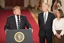 عين ترامب للعدالة المحافظة، نيل غورسوتش، وقام بإعادة منصبه لسياسة مكسيكو سيتي، وفي 23 يناير، وقع ترامب مذكرة رئاسية حول سياسة مدينة مكسيكو بشأن التمويل الاتحادي للمنظمات غير الحكومية الأجنبية.[240][241][242] وهذه نقطة أساسية في النقاش المتعلق بالإجهاض، حيث أن المنظمات غير الحكومية الأجنبية التي تتلقى التمويل الاتحادي الأمريكي لن تكون قادرة على تقديم خدمات الإجهاض أو الترويج لها أو القيام بها كجزء من تنظيم الأسرة في بلدانها باستخدام أموال الحكومة غير الأمريكية. [243][244] وادعت مجلة فوربس أن ذلك قد "يؤثر على 9.5 مليار دولار" في البرامج التي تصل إلى "225 مليون امرأة عالميا".[16][245][246]
