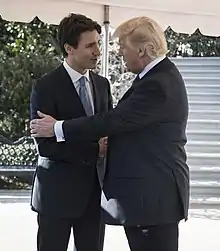 وصرحت ابن ترامب البالغ من العمر 36 عاما، وهو جاريد كوشنر، مستشار رئيس ترامب جنبا إلى جنب مع ستيفن ميلر. "قال ترامب في مقابلة له مع صحيفة" تايمز أوف لندن "في يناير / كانون الثاني أن كوشنر سيكون مسؤولا عن التوسط في السلام في القضية الفلسطينية.[90][91][92][93] وهو أيضا كبير المستشارين للعلاقات مع كندا، الصين والمكسيك ". وفي 3 أبريل / نيسان، رافق كوشنير رئيس هيئة الأركان المشتركة، الجنرال جوزيف ف. دونفورد جونيور ومستشار الأمن الداخلي توماس ب. بوسرت للاجتماع مع رئيس الوزراء العراقي حيدر العبادي" ومناقشة الحرب ضد الدولة الإسلامية، وما إذا كانت الولايات المتحدة ستغادر القوات في العراق بعد ذلك ".[93][94] دعى ترامب كوشنر رئيسا لمكتب البيت الابيض للابتكار الأمريكي، الذي أنشئ في 29 مارس / آذار، استخدام أفكار من القطاع الخاص لإصلاح جميع الوكالات والإدارات الاتحادية من أجل "خلق فرص العمل".[95][96][97][98] إحدى الأولويات الأولى لمكتب مراجعة الحسابات الداخلية هي تحديث تكنولوجيا الإدارة مثل شؤون المحاربين القدامى. وفي منصبه الجديد، عمل كوشنر مع كريس كريستي، في "لجنة الرئيس لمكافحة الإدمان على المخدرات والأزمة الأفيونية" استجابة لتعهد ترامب بمكافحة تعاطي المواد الأفيونية.[95][99][100]