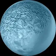 - على سبيل المثال، تثيس، وهو قمر تابع لزحل تبلغ كثافته 0.97 جم/سم3 مما يدل على أن أكثر من 90% منه من الماء.[7]