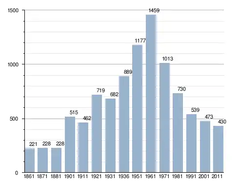 في سنة 1861 بلغ عدد السكان 221 نسمة، وتطور العدد ليصل في سنة 2011 لـ 430 نسمة.