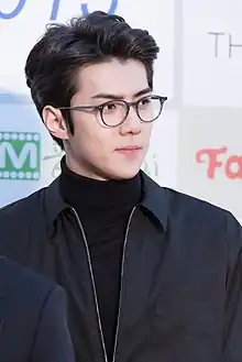 ![]() أوه سي هون في حفل توزيع جوائز مخطط غاون للبوب الكوري السجادة الحمراء في 17 فبراير 2016. | |