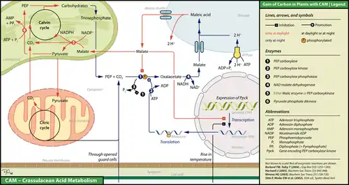 أيض حامض المخلدات[1] أو أيض الحمض العصاري (بالإنجليزية: Crassulacean acid metabolism) المعروف اختصارا باسم (بالإنجليزية: CAM) هو أحد طرق التمثيل الضوئي في النباتات. توجد هذه الطريقة لدى نباتات تعيش في ظروف بيئية محدودة الرطوبة وحارة، ولهذا يعد هذا النمط متكيفا مع البيئات القاحلة ومتطورا عن التمثيل الضوئي رباعي الكربون، حيث يتم تثبيت الكربون خلال الليل ويخزن ثنائي أكسيد الكربون في الليل على شكل حمض التفاح رباعي الكربون في الفجوات العصارية لاستخدامه في التمثيل الضوئي عند توفر الضوء في اليوم التالي. الهدف من هذه العملية هو إبقاء الثغور في الأوراق مغلقة طوال اليوم لتقليل النتح.