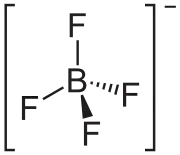 يكتب أيون مركب معقد بين قوسين قائمين وتكتب الشحنة على القوس، كالشكل المبين لأيون تترافلوروبورات :