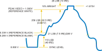 و لذلك كل "وحدة IRE" تعادل 1/140 فولت . معظم الأجهزة المنتجة للصورة أو الفيديو عادة بكون اللون الأسود في الصورة بين 7.5 "IRE" و 10 "IRE" و الحد الأقصي لسطوع الصورة عادة أقل بقليل من 100 "IRE" .