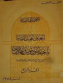 يحتوي الإتحاف في الأصل على أربعة مجلدات، وهو مرتب على مقدمة وثمانية أبواب وخاتمة. إلا أنه صدر في 8 أجزاء، تتوزع كما يلي:
