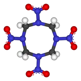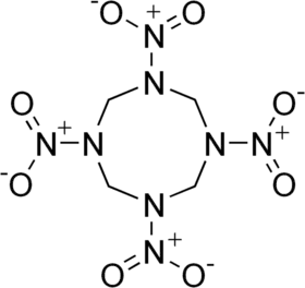 يتكون الهيكل الجزيئي لإتش إم إكس (HMX) من حلقة مؤلفة من ثمانية ذرات من ذرات الكربون والنيتروجين المتناوبة ، مع مجموعة نترو مرتبطة بكل ذرة نيتروجين. بسبب وزنها الجزيئي العالي ، فهي واحدة من أكثر المتفجرات الكيميائية القوية المصنعة ، على الرغم من أن عددا من أحدث منها ، بما في ذلك الهكسانيتروهكسازايسوورتزيتان (HNIW) و الأوكتانيتروكوبان (ONC)، ويتوفر إتش إم إكس لتكون مهددة ماديًا بسبب توفرها بكميات كبيرة، ويستخدم في مجالات عديدة، مثل الوقود الخاص بالصواريخ الصلب، وفي صواعق الأسلحة النووية، حيث تسهم في تصنيع الغيوم ذات شكل يشبه شكل الفطر المتوهج. [2]
