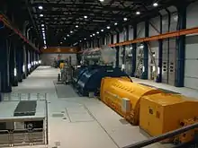 الصورة تبين جهاز يعمل بالديزل ليدير العضو الدوار وعن طريق إثارة مغناطيسية تأتي من دينامو فوق الجهاز فينتج التيار الكهربائي (الجهاز هو مولد كهربائي) .