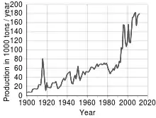 |CitationClass=تم تجاهله (مساعدة) - "Mineral Commodity Summaries: Antimony" (PDF). الماسح الجيولوجي الأمريكي. مؤرشف من الأصل (PDF) في 11 يناير 2019. اطلع عليه بتاريخ 01 يناير 2016. الوسيط