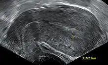 |CitationClass=تم تجاهله (مساعدة) - Doubilet PM, Benson CB, Bourne T, Blaivas M, Barnhart KT, Benacerraf BR, Brown DL, Filly RA, Fox JC, Goldstein SR, Kendall JL, Lyons EA, Porter MB, Pretorius DH, Timor-Tritsch IE (2013). "Diagnostic Criteria for Nonviable Pregnancy Early in the First Trimester". New England Journal of Medicine. 369 (15): 1443–1451. doi:10.1056/NEJMra1302417. PMID 24106937. الوسيط