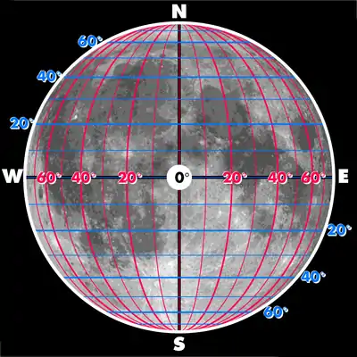الإحداثيات القمرية (بالإنجليزية: Selenographic coordinates) ترمز إلى المواقع على سطح القمر[؟] التابع للأرض[؟].[1] من الممكن تحديد أي موقع على سطح القمر بقيمتين عدديتين، هاتان القيمتان تقابلان دائرة العرض وخط الطول على الأرض. خط الطول يعطي الموقع بالنسبة لشرق وغرب القمر حول خط الطول الرئيسي وهو الخط الذي يمر في نقطة سطح القمر المواجهة مباشرة للأرض. أما خط العرض فيعطي الموقع شمالاً وجنوباً بالنسبة لخط استواء القمر. تقاس كلا الإحداثيات بواحدة الدرجة.