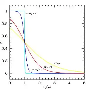 - إحصاء فيرمي ديراك : عدد الفرميونات التي تملك طاقة تبلّغها هذا المستوى أو عدد الجسيمات المفرمنة التي تملك طاقة أكبر وتتيح لها بلوغ المستوى المحدد لها .