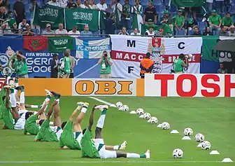 لاعبون يقومون بعملية الإحماء قبل المباراة الرئيسية في كأس العالم بألمانيا 2006