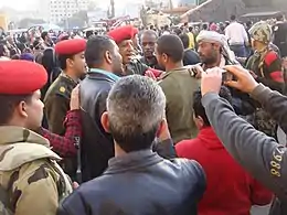 مجموعة من أفراد الشرطة العسكرية في أحد شوارع القاهرة عقب تنحي الرئيس الأسبق حسني مبارك