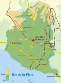 تشكل مقاطعة سان خوسيه جزءاً من الساحل الجنوبي للأوروغواي إضافة إلى الأقاليم؛ كولونيا، ومونتي فيديو، وكانيلونيس، مالدونادو، وروتشا. ويعد جزء من المقاطعة ضمن المزيج من المناطق التابعة لمونتي فيديو العظمى.