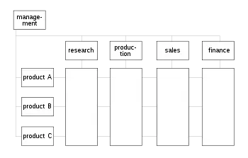 وحيث أن التنظيمات التي تركز على المشاريع (مثل تنظيمات البناء أو الهندسة أو الصناعات الفضائية الجوية) لها هياكل قد تم بناؤها لفرق عمل المشروع كوحداتهم الوظيفية، فإن تنظيمات المصفوفة تتبع الهياكل التقليدية، مع إدخال بعض التعديلات على التسلسل الهرمي لدعم وحدات المشروع.[1]