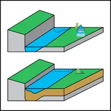 في عام 2009، ذكر تقرير صادر عن باحثين من جامعة كولورادو ببولدر نُشر في مجلة نيتشر لعلوم الأرض (Nature Geoscience) أن تقليل الإرساب كان يسهم في زيادة خطورة التعرض للفيضانات في العديد من مناطق الدلتا .[1]