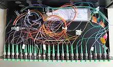 - جهاز الإرسال والاستقبال - عمليًا ، لن تكون مدخلات ومخارج الإشارة كهربائية ولكن بصرية بدلاً من ذلك (عادةً عند 1550 نانومتر). هذا يعني أن هناك حاجة إلى محولات الطول الموجي في الواقع بدلاً من ذلك ، وهو بالضبط ما هو جهاز الإرسال والاستقبال. يمكن أن يتكون جهاز الإرسال والاستقبال من اثنين من أجهزة الإرسال والاستقبال الموضوعة بعد بعضها البعض: جهاز الإرسال / الاستقبال الأول الذي يقوم بتحويل 1550 نانومتر إشارة بصرية من / إلى إشارة كهربائية ، وجهاز الإرسال والاستقبال الثاني يحول الإشارة الكهربائية من / إلى إشارة بصرية عند الطول الموجي المطلوب. أجهزة الإرسال والاستقبال التي لا تستخدم إشارة كهربائية وسيطة (جميع أجهزة الإرسال والاستقبال الضوئية) قيد التطوير.