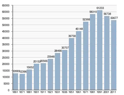 في سنة 1861 بلغ عدد السكان 12٬693 نسمة، وتطور العدد ليصل في سنة 2011 لـ 53٬677 نسمة.