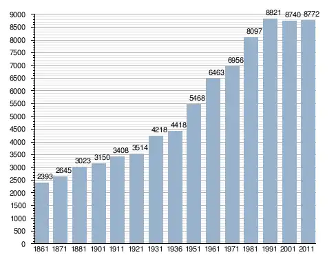 في سنة 1861 بلغ عدد السكان 2٬393 نسمة، وتطور العدد ليصل في سنة 2011 لـ 8٬772 نسمة.