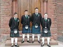 رجال اسكتلنديون يرتدون الزي الفلكلوري الاسكتلندي والمتميز بالإزار الاسكتلندي