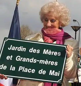 ![]() السيدة كارلوتو في افتتاح حديقة أمهات وجدات بلازا دي مايو، في باريس. | |