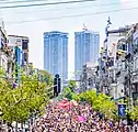 هناك أربع مناطق حضريَّة رئيسيَّة: غوش دان (منطقة تل أبيب الحضرية؛ يبلغ عدد سكانها 3,854,000)، ومنطقة القدس الحضرية (يبلغ عدد سكانها 1,253,900)، ومنطقة حيفا الحضرية (يبلغ عدد سكانها 924,400)، ومنطقة بئر السبع الحضرية (عدد سكانها 377,100).[62] أكبر بلدية إسرائيل، من حيث عدد السكان والمنطقة، هي مدينة القدس والتي تضم حوالي 901,302 نسمة يقطنون في مساحة 125 كيلومتر مربع (48 ميل مربع).[63] تشمل إحصاءات الحكومة الإسرائيلية المتعلقة بالقدس سكان القدس الشرقية ومساحتها، والتي يُعترف بها على نطاق واسع كجزء من الأراضي الفلسطينية الخاضعة للاحتلال الإسرائيلي.[64](6) تُصنّف تل أبيب وحيفا كأكبر مدن إسرائيل اكتظاظًا بالسكان، حيث يبلغ عدد سكانها 443,939 وحوالي 281,087 نسمة، على التوالي.[63] يوجد في إسرائيل 16 مدينة يزيد عدد سكانها عن 100,000 نسمة. في المجمل، هناك 77 بلدة إسرائيلية مُنحت وضع "البلديات" (أو "المدينة") من قبل وزارة الداخلية،[65] أربعة منها في الضفة الغربية.[66] وتم التخطيط لمدينتين أخرتين: كزيف، وهي مدينة مخططة سيتم بناؤها في النقب، وحريش، وهي في الأصل بلدة صغيرة يتم بناؤها كمدينة كبيرة منذ عام 2015.[67]