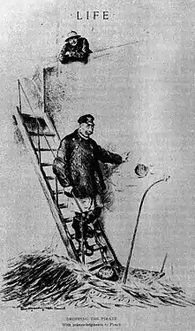 إسقاط القبطان. رسم كاريكاتوري للسير جون تينيل (1820–1914)، نُشر لأول مرة في المجلة البريطانية بانش، 29 مارس 1890[1]