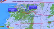 |CitationClass=تم تجاهله (مساعدة) - "الدفاع الروسية: المقاتلة الروسية لم تخترق الأجواء التركية". روسيا اليوم. 24-11-2015. مؤرشف من الأصل في 17 أبريل 2020. اطلع عليه بتاريخ 24 نوفمبر 2015. الوسيط