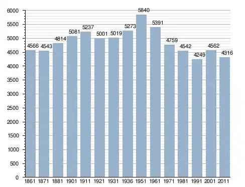 في سنة 1861 بلغ عدد السكان 4٬566 نسمة، وتطور العدد ليصل في سنة 2011 لـ 4٬316 نسمة.