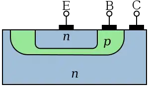 يتكون الترانزيستور في العادة من ثلاثة طبقات من نوع NPN أو PNP .