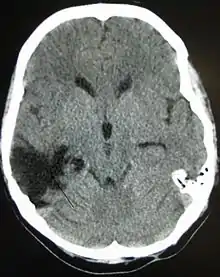 الاختبار الإشعاعي المفضل في حالة الطوارئ هو التصوير المقطعي المحوسب (CT)؛ فهو سريع، ودقيق، ومتاح على نطاق واسع.[69] ويمكن إجراء عمليات المسح المقطعي في وقت لاحق لتحديد ما إذا كانت الإصابة قد تطورت.[2]