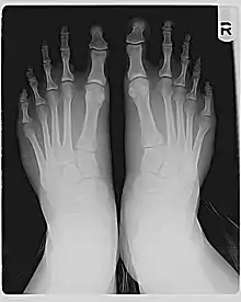 |CitationClass=تم تجاهله (مساعدة) - Young, Craig C.; Niedfeldt, Mark W.; Morris, George A.; Eerkes, Kevin J. (2005). "Clinical Examination of the Foot and Ankle" (PDF). Primary Care: Clinics in Office Practice. 32 (1): 105–132. doi:10.1016/j.pop.2004.11.002. PMID 15831315. مؤرشف من الأصل (PDF) في 17 مايو 2017. اطلع عليه بتاريخ أغسطس 2020. الوسيط