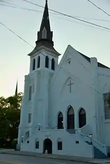 ![]() A white-painted church at sunset. كنيسة إيمانويل الأسقفية الميثودية الأفريقية في عام 2008 | ||||