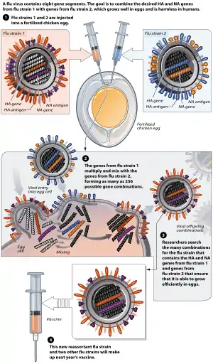 إعادة التشكيل الجيني لللفيروس هو عبارة عن خلط المكونات الجينية المكونة لفيروسين متشابهين يصيبان نفس الخلية.[1][2][3] إعادة تشكيل التركيب الجيني للفيروس غالباً ما يحصل في فيروس الإنفلونزا و الذي يتكون من 8 مناطق من الرنا حيث يتم تبادل أجزاء الرنا لتكوين فيروس ذو تركيبة جينية جديدة.