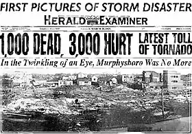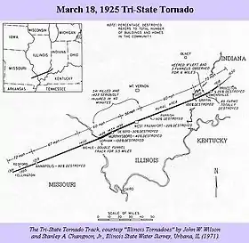إعصار الولايات الثلاث إعصار جائحي دمر شمال شرقي ميزوري وجنوب غربي إنديانا وجنوبي إلينوي عبر مناطق ريفية بشكل رئيسي في 18 مارس 1925 وتسبب بمقتل 747 شخصا وجرح 2,298 شخصا وكان أول إعصار قمعي يضرب الولايات المتحدة وتشكل 12 إعصارا قمعي من بينهم 3 أعاصير من الدرجة الأولي و2 من الدرجة الثانية و4 من الدرجة الثالثة و2 من الدرجة الرابعة وإعصارا واحدا من الدرجة الخامسة.[1]