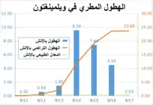 |CitationClass=تم تجاهله (مساعدة) - NWS Eastern Region [NWSEastern] (September 16, 2018). "Updated preliminary rainfall totals across North and South Carolina from Hurricane Florence received as of 2 p.m. EDT, on Sunday, September 16. Heavy rain continues to fall across central and western portions of North Carolina and Virginia" (تغريدة). الوسيط