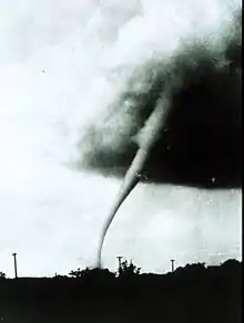 الإعصار القُمْعيّ (ملاحظة 1) هو عاصفة هوائية عنيفة تتميز بغيمة مخروطية دوارة وقمع متكثف وغيمة من الغبار الدوار حول التورناِدو .