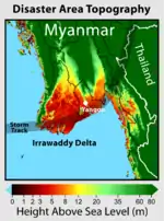 و أعلنت وكالات الإغاثة الدولية عن مخاوفها من أن عدد الضحايا قد يزيد عن 100.000 قتيل قد يكونون قضوا من جراء الاعصار المدمر الذي ضرب بشدة دلتا نهر ايراوادي، نسبة كبيرة منهم في مقاطعة واحدة فقط وهي مقاطعة لابوتا ونحو مليون مشرد. و أعزت السبب الي توقع ارتفاع عدد الضحايا الي التأخر المتعمد من قبل الحكومة العسكرية في ماينمار لمنح تأشيرات لعدد كبير من العاملين في مجال الاغاثة الدولية.