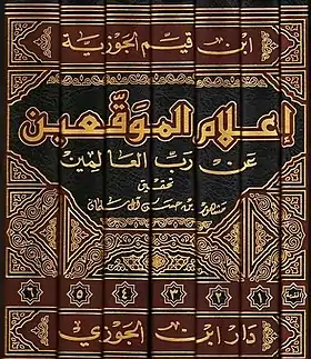 إعلام الموقعين عن رب العالمين كتاب ألفه ابن قيم الجوزية جمع مصنفه فيه بين الفقه وأصوله ومقاصد الشريعة وتاريخ التشريع والسياسة الشرعية مستعيناً بأول ما أخذ وتلقي عن رسول الله صلى الله عليه وسلم وعمن انتشر عنهم الفقه والدين، ثم تكلم عن الاجتهاد و القياس في بحث مطول. وصل به إلى نهاية المجلد الثاني مع أمثلة مطولة ثم تناول بعد ذلك دراسة تفصيلية في مجموعة كبيرة من الفتاوى في مسائل مهمة في مباحث القضاء والعقيدة والعبادات والمعاملات والزواج والطلاق و الربا وأيضاً بعض الفتاوى عن الضرورات التي تبيح المحضورات وغير ذلك.... فأحسن اختيار الاستشهادات وتروى في الترجيح.[1]