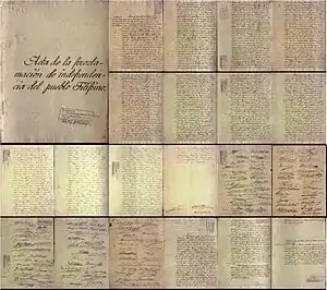تم إعداد وثيقة إعلان الاستقلال وكتبتها بواسطة أمبروزيو ريانزاريس باوتيستا باللغة الإسبانية، وقد وقع الإعلان من قبل 98 شخصًا، من بينهم ضابط في جيش الولايات المتحدة شهد الإعلان.[1]