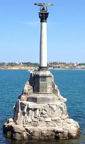 نصب تذكاري لأماندوس أدامسون للسفن المغرقة في سيفاستوبول. كان أسطول البحر الأسود الروسي المغرق قبل حصار سيفاستوبول خلال حرب القرم.