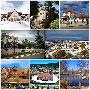 ![]() في اتجاه عقارب الساعة من أعلى اليسار: جامعة الأخوين وأسد إفران ومركز البريد ومنظر عام للمدينة وبحيرة إفران ومسجد محمد السادس وحدائق وسط المدينة | |