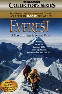 إفرست هو عبارة عن فيلم وثائقي أمريكي يدور حول المشقة في تسلق قمة جبل افرست وهي أعلى نقطة على سطح الأرض والتي تقع في جبال الهملايا في النيبال ولقد نشر لمسارح الـ Imax في عام 1998 الفيلم ذو الأربعين دقيقة وهو من رواية ليام نيسون وصور كليا لكي يكون ملائما لشاشات الـ Imax الضخمة وهو يتضمن التدرب والاستعداد لتسلق قمة[؟] افريست وهو يتحدث أيضا عن المخاطر في تسلق هذه القمة مثل الانهيارات الثلجية وأيضا قلة الأكسجين في مثل هذه المرتفعات هذا الفيلم وكان في الإنتاج في جبل افرست أثناء حصول حادثة 1996 حينما علقت مجموعة من المتسلقين في عاصفة ثلجية قرب القمة وهذا الفيلم يحتوي على صور[؟] لهؤلاء الأشخاص وهذا الفيلم حقق أرباح في بداية عرضه في أدوار السينما في أمريكا[؟] وكندا تقدر بـ 87 مليون دولار وهو ثاني أكبر ربح لفلم وثائقي في تاريخ أدوار SPG 2010 عرض الـ Imax.[2]
