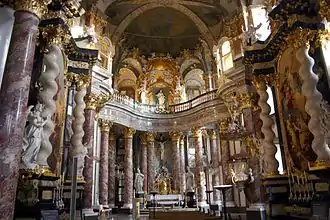 في جنوب غربي المبنى يوجد Hofkirche وهي كنيسة خاصة بنيت على الطراز الباروكي زخارف جصية ومنبر من تصميم فنانين إيطاليين، خارج البناء يوجد حديقة ضخمة تسمى Hofgarten صممت هي الأخرى في القرن الثامن عشر.