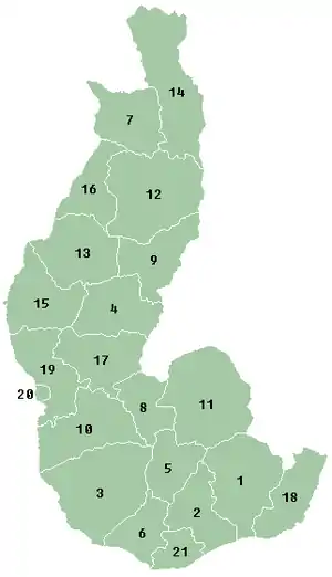 قسم إقليم توليارا إلى أربع مناطق من مدغشقر أندري، أنسي، أندريفانا أتسيمو وميناب. وأصبحت هذه المناطق الأربع تقسيمات إدارية في المستوى الأول عندما ألغيت المقاطعات في عام 2009. أنهم هم سوبديفيديد في 21 مقاطعة: