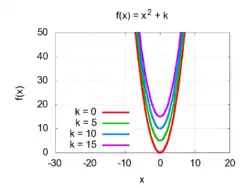 ورسم منحنى الدالة ƒ(x) + k = x2 + k هو قطع مكافئ تمت إزاحته لأعلى بالقيمة k، ورأسه هي نقطة كما هو مبين بالشكل الثاني.