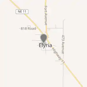 إلايريا (بالإنجليزية: Elyria, Nebraska) هي منطقة سكنية تقع في الولايات المتحدة في مقاطعة فالي، نبراسكا.[3] يقدر عدد سكانها بـ 51 نسمة ومساحتها 0.70 كم2 ووترتفع عن سطح البحر 641 متر.