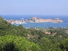 صورةٌ بَانورامية (صُورة شامِلةُ الرُّؤية) لِجزِيرة إِلبَا الإِيطالِيَّة الَّتِي يضُمُّهَا البحر الأَبيض مِن كُلّ جِهَاتِها
